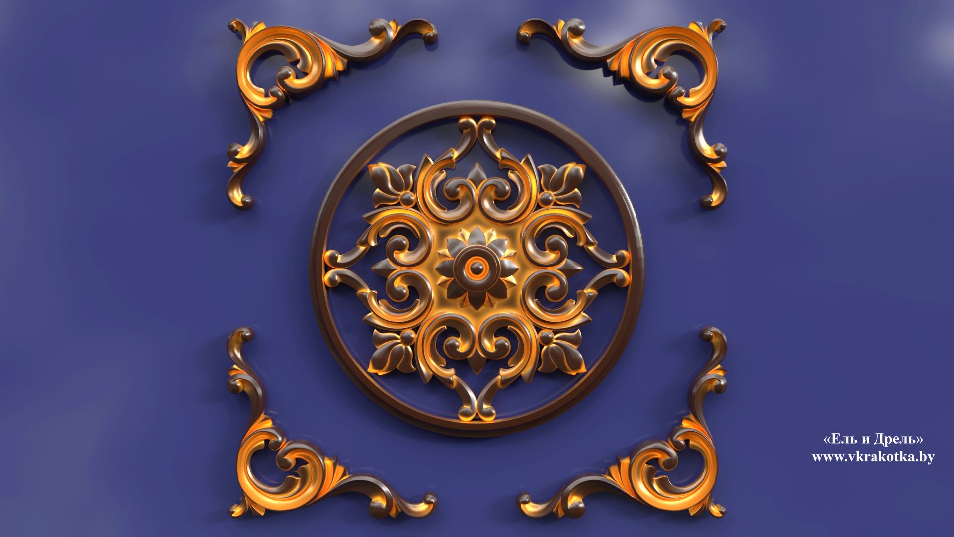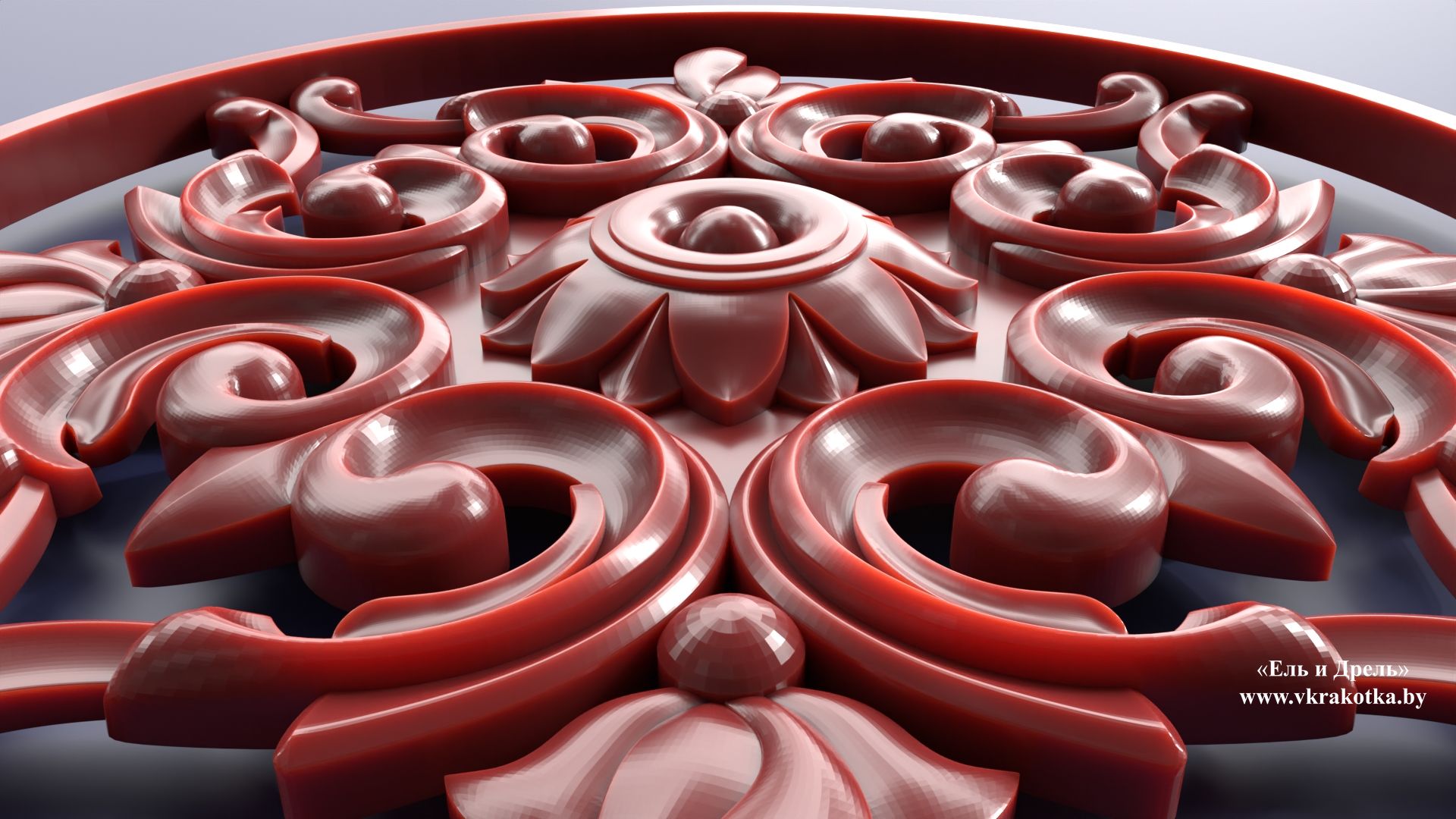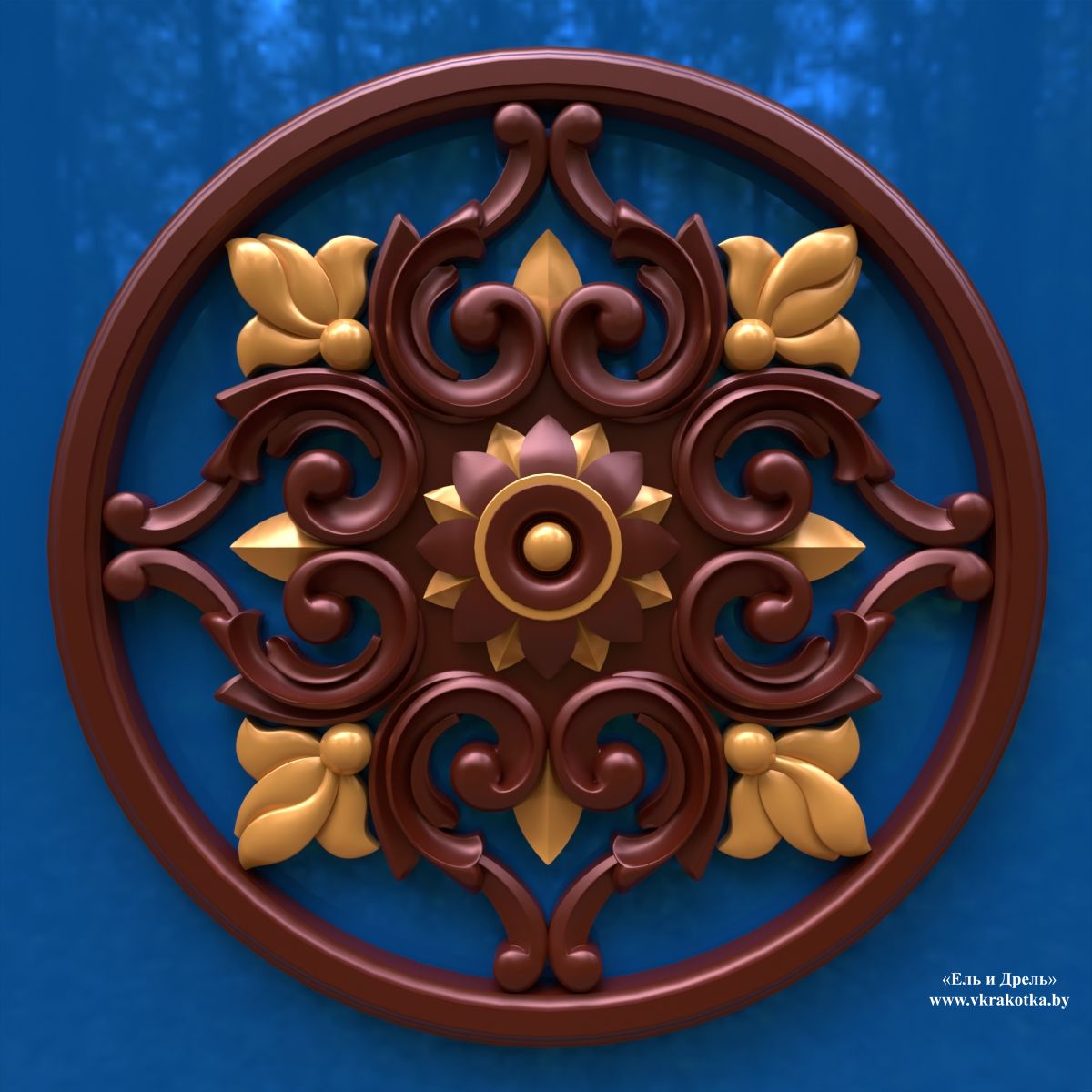 3d модель: резной узор в круге с четырьмя угловыми элементами.