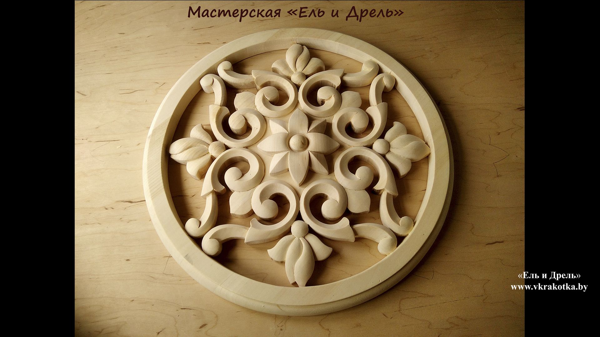 Потом вручную, с помощью резцов по дереву и стамесок, были вырезаны угловые элементы и центральная (круглая) часть (диаметр 530мм)