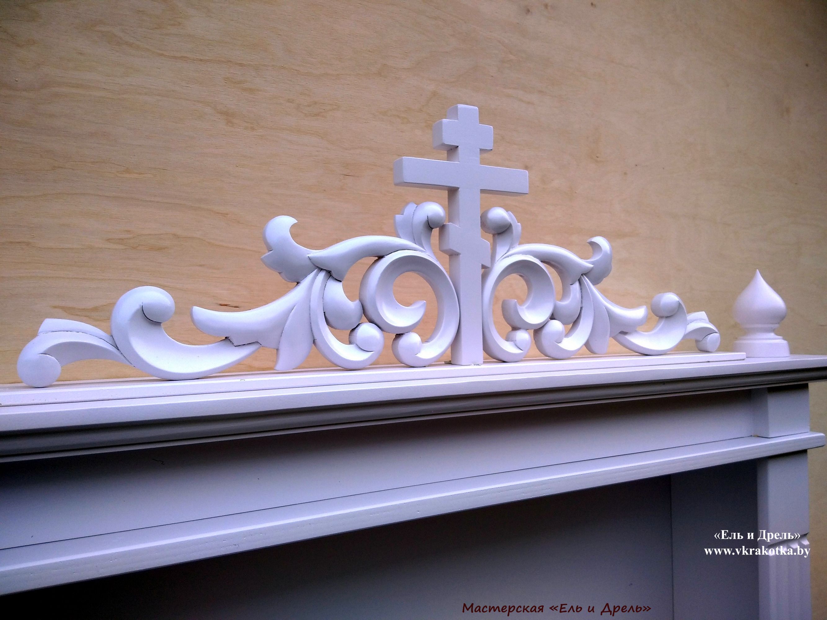 На главном фото резьба окрашена полиуретановой эмалью и прозрачным шелковисто-матовым лаком