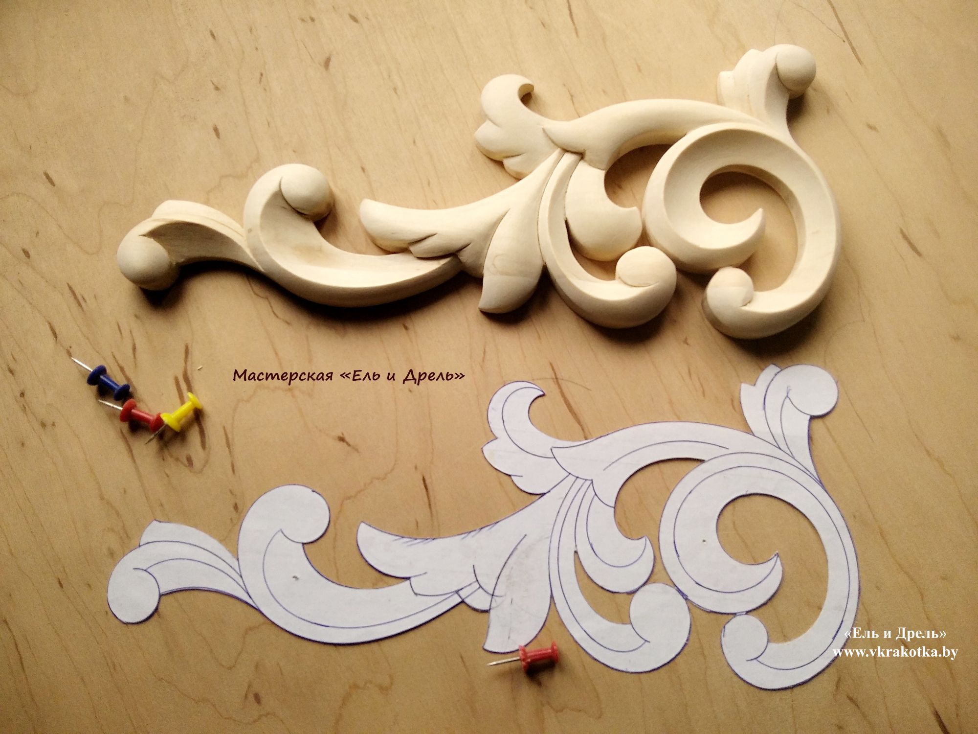 Резной элемент и шаблон для резьбы