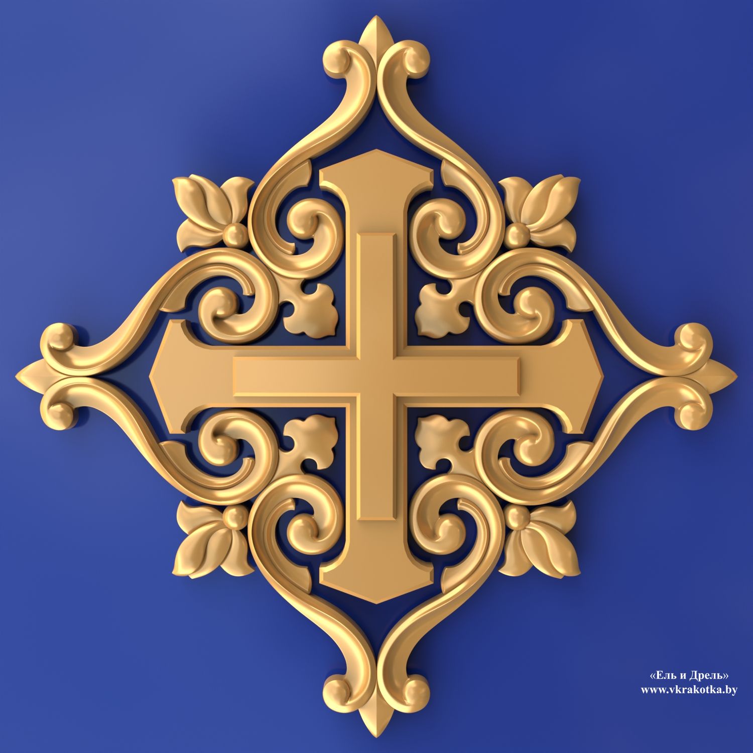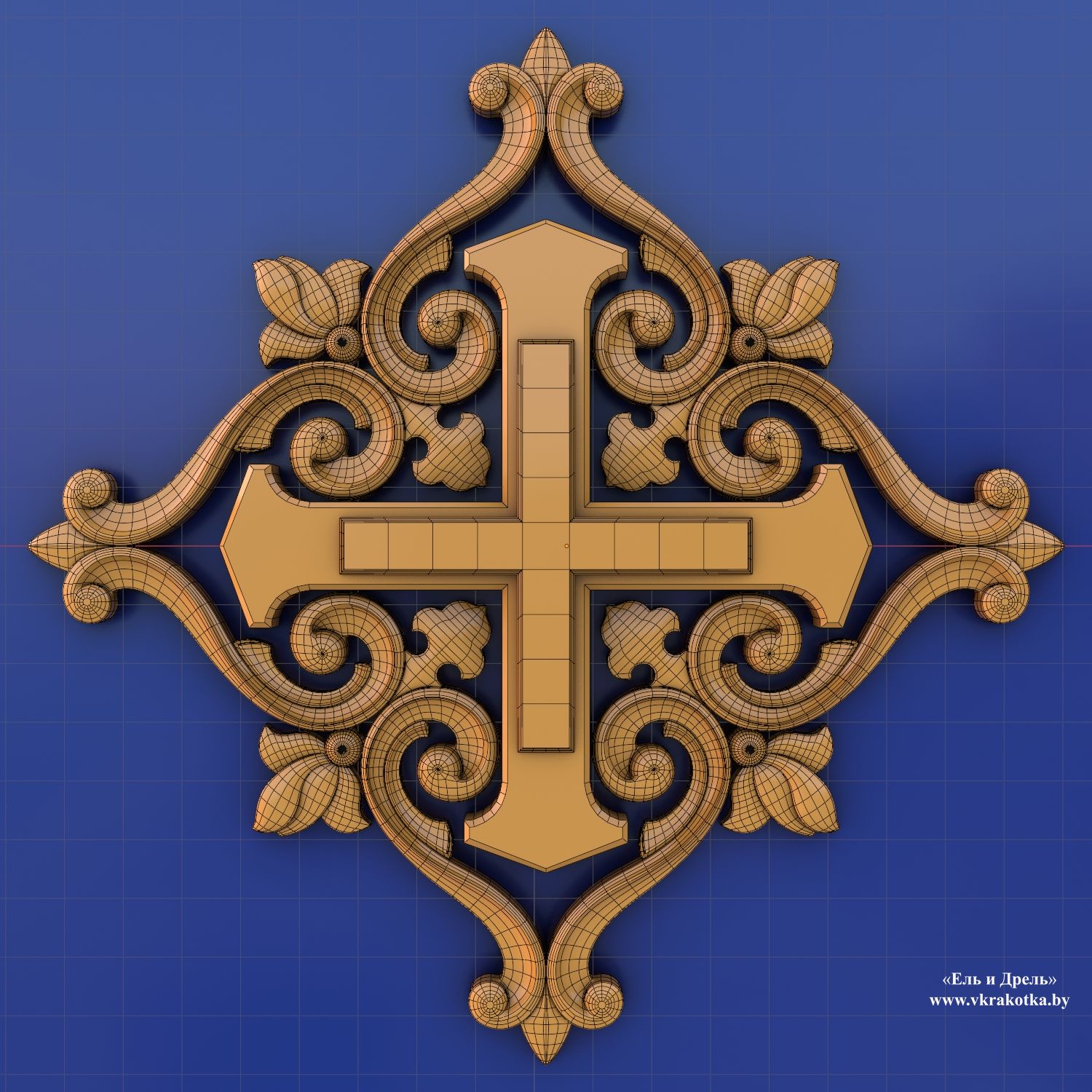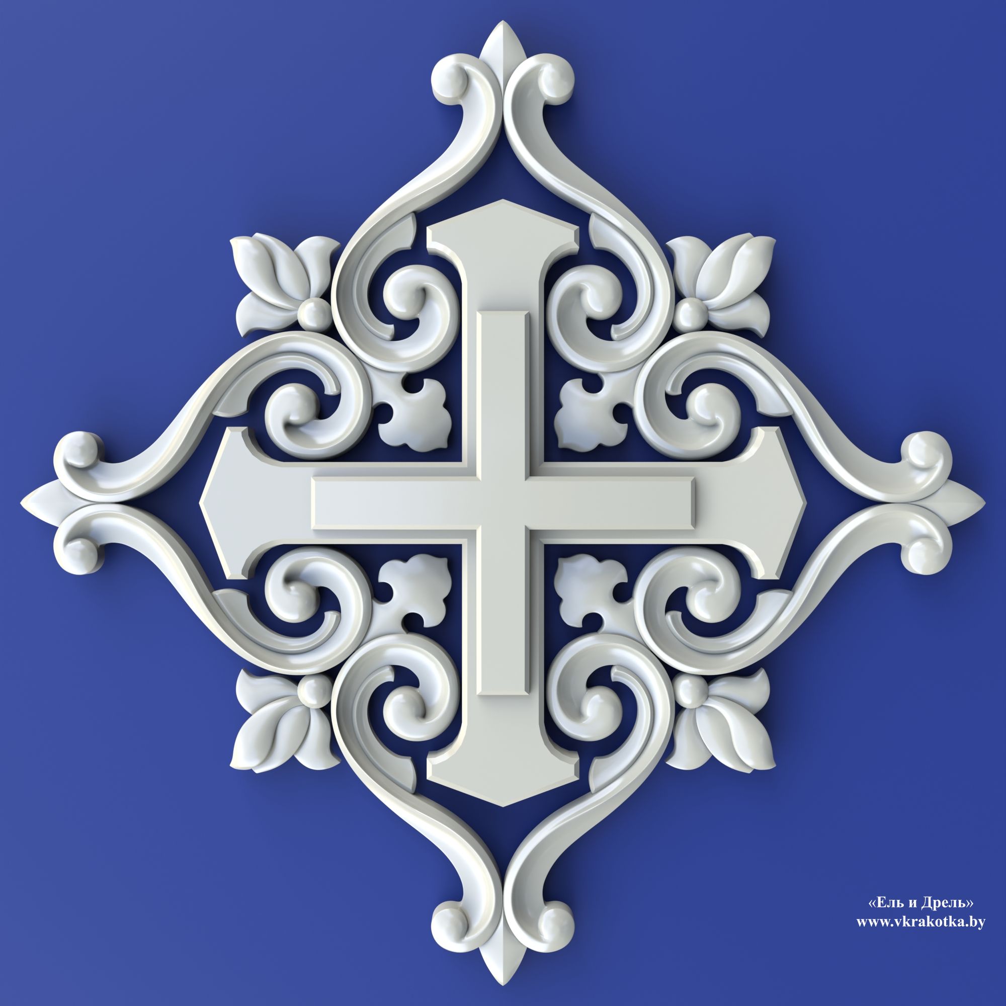 Равноконечный крест в резном орнаменте: 3D-модель для ЧПУ