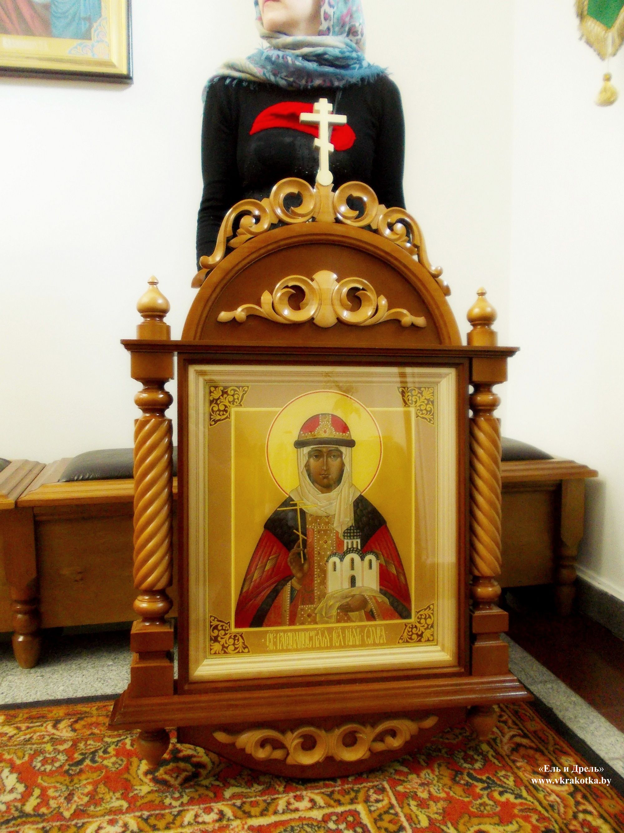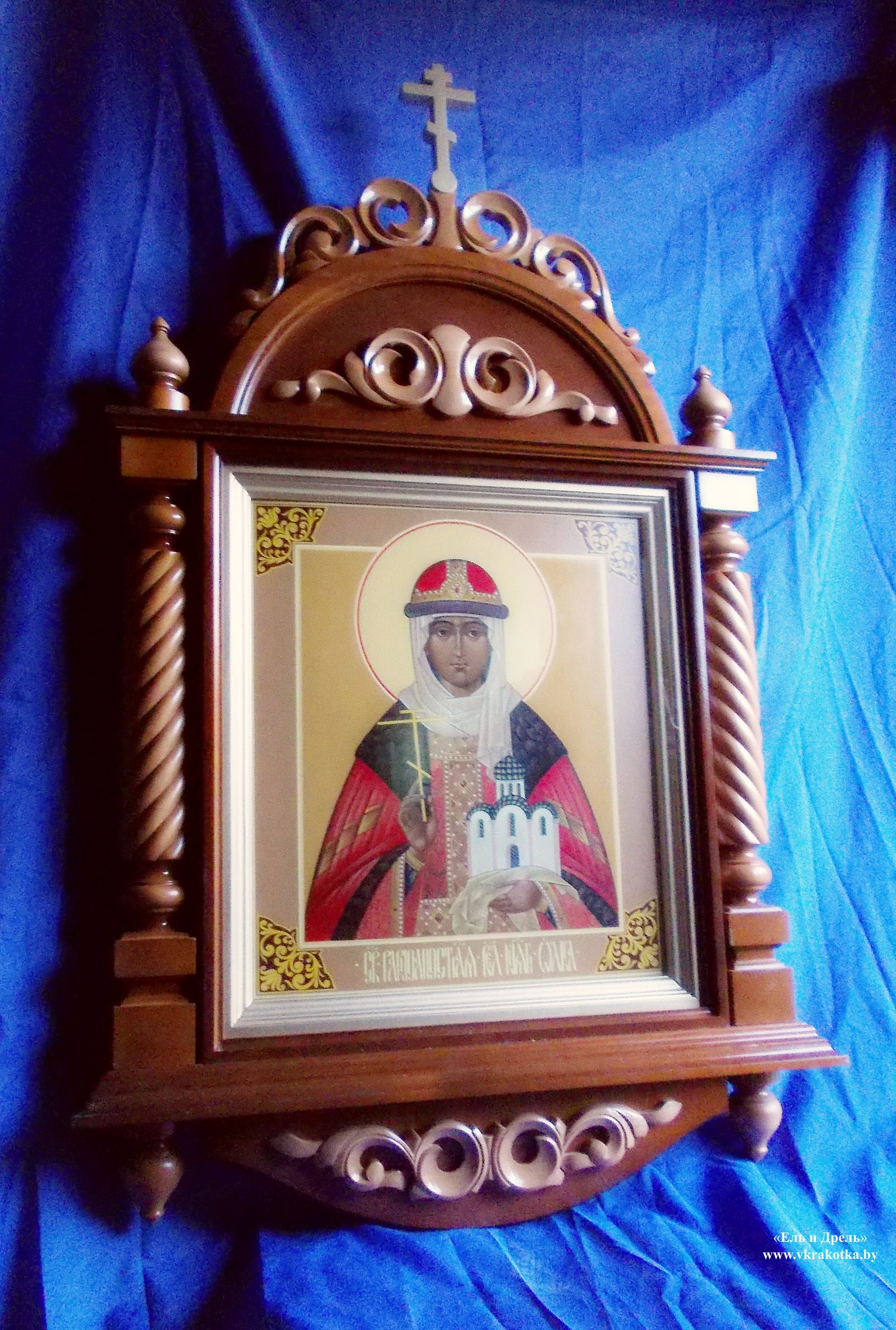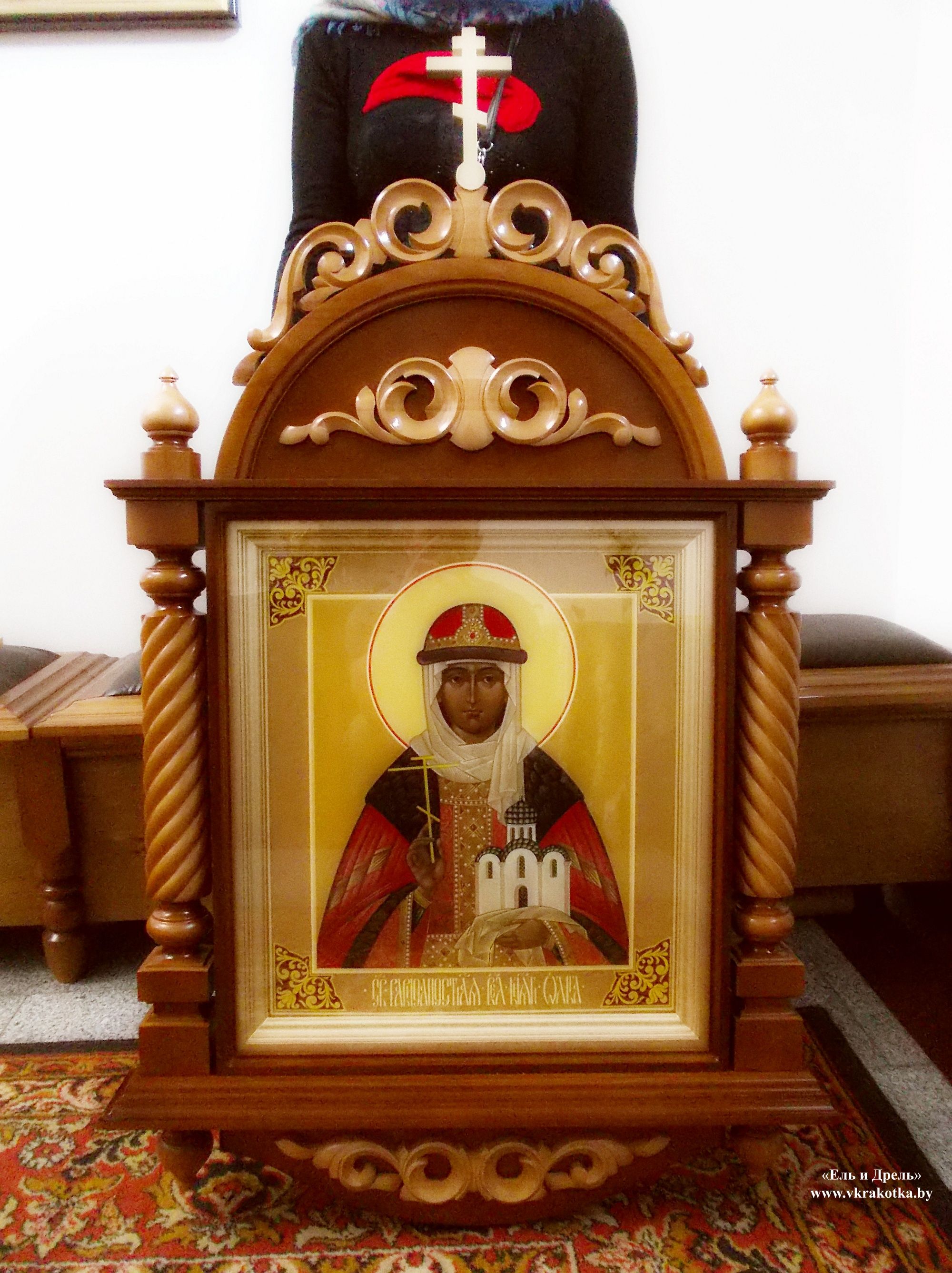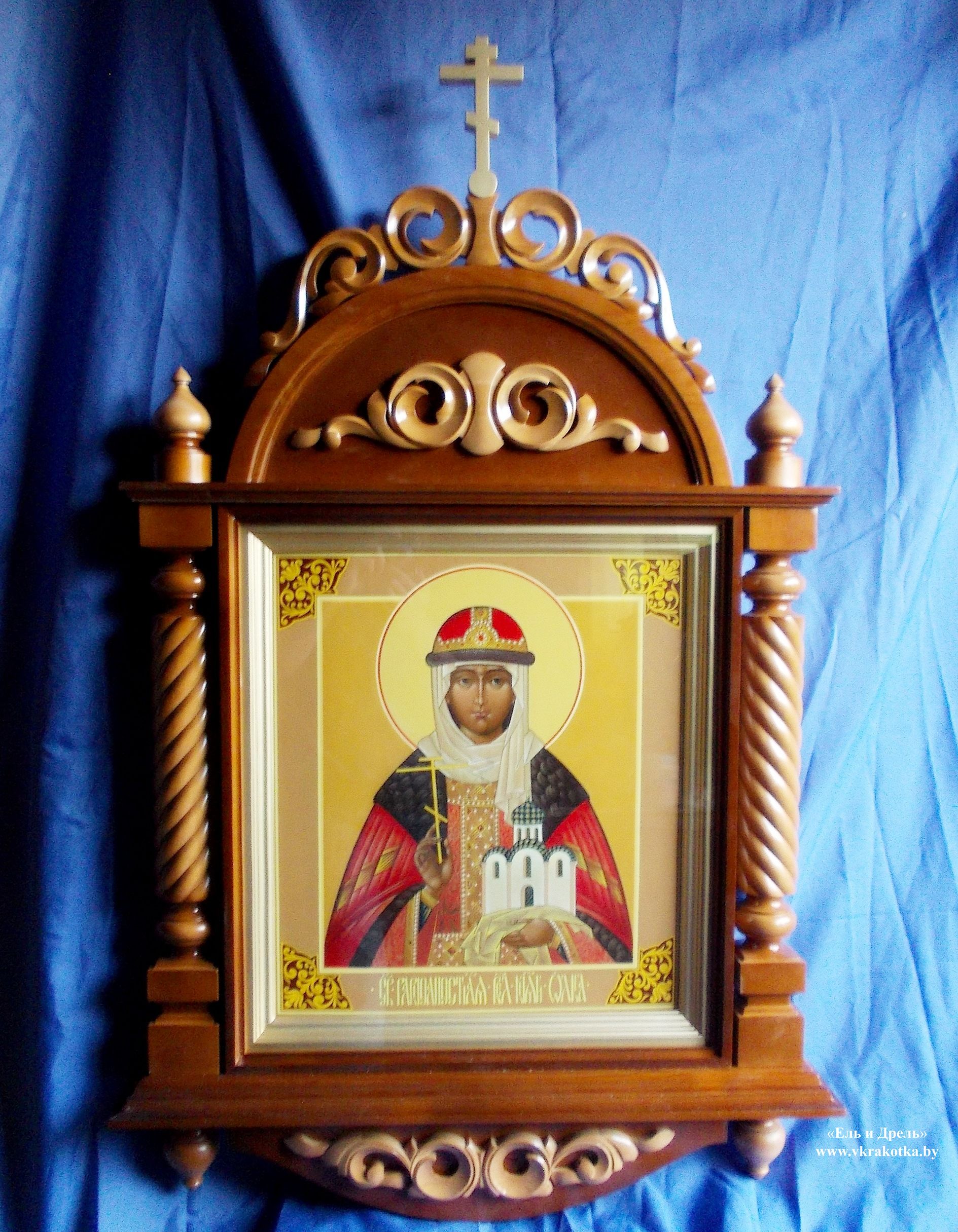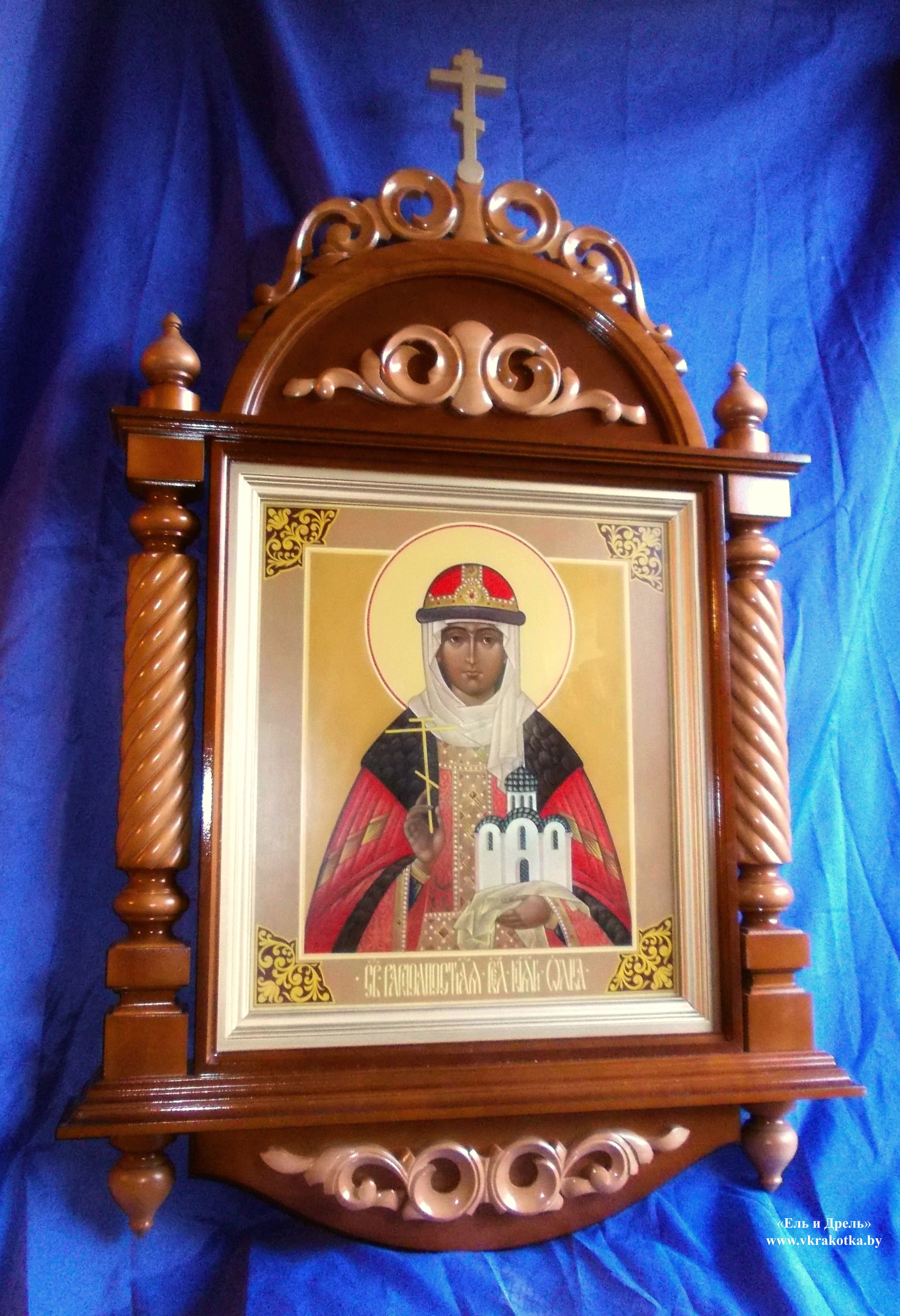Деревянный резной киот для иконы святой равноапостольной великой княгини Ольги.