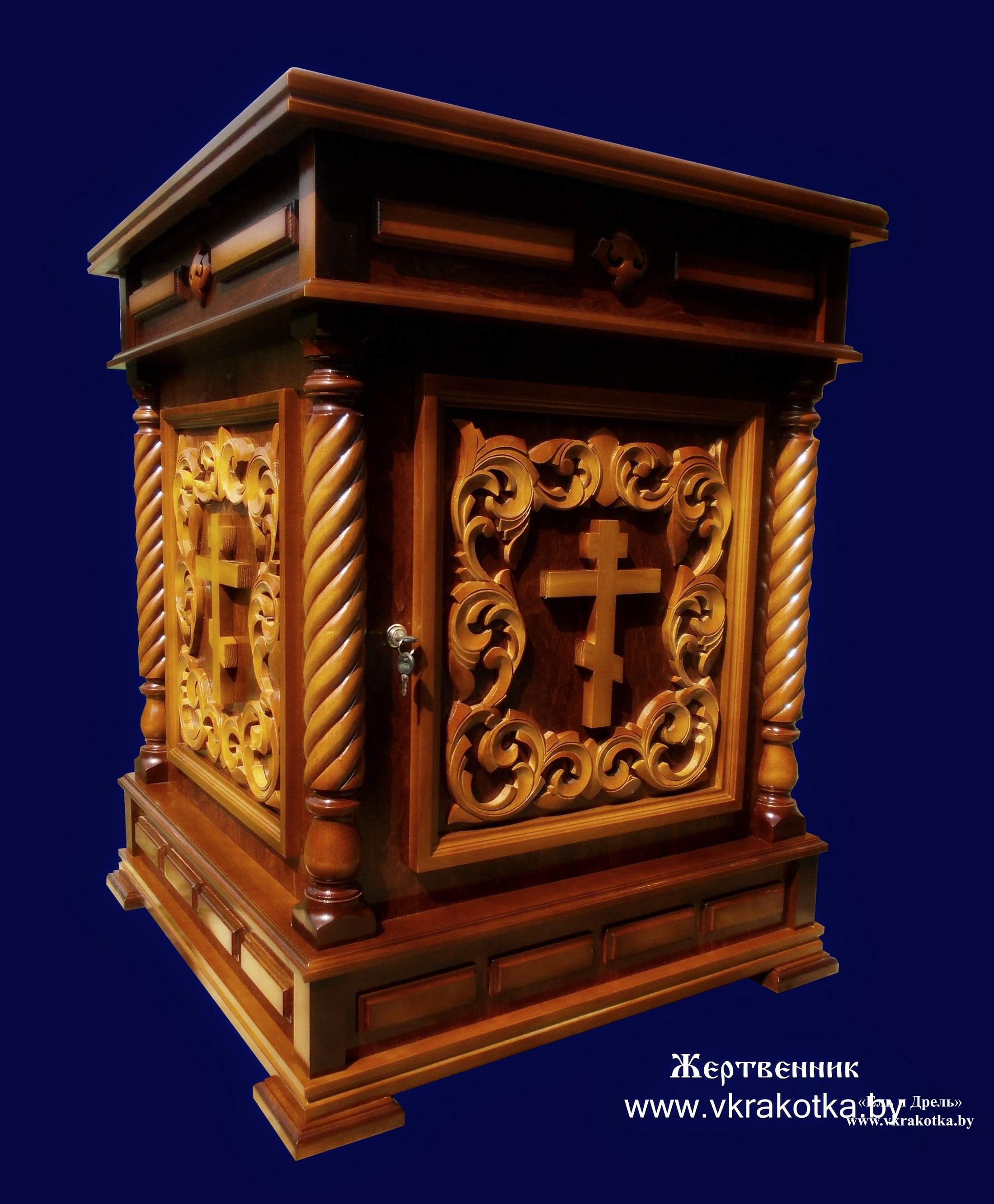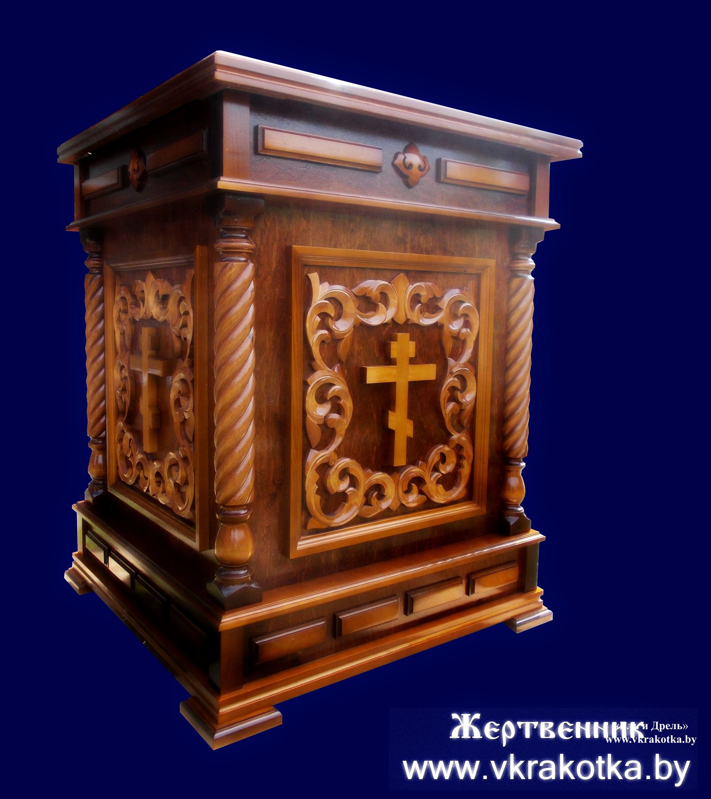Деревянный резной жертвенник в православный храм прихода или монастыря предлагаем купить в нашей мастерской в Великой Кракотке.Изготавливаем только на заказ по индивидуальным проектам, возможна рассрочка при выплате.