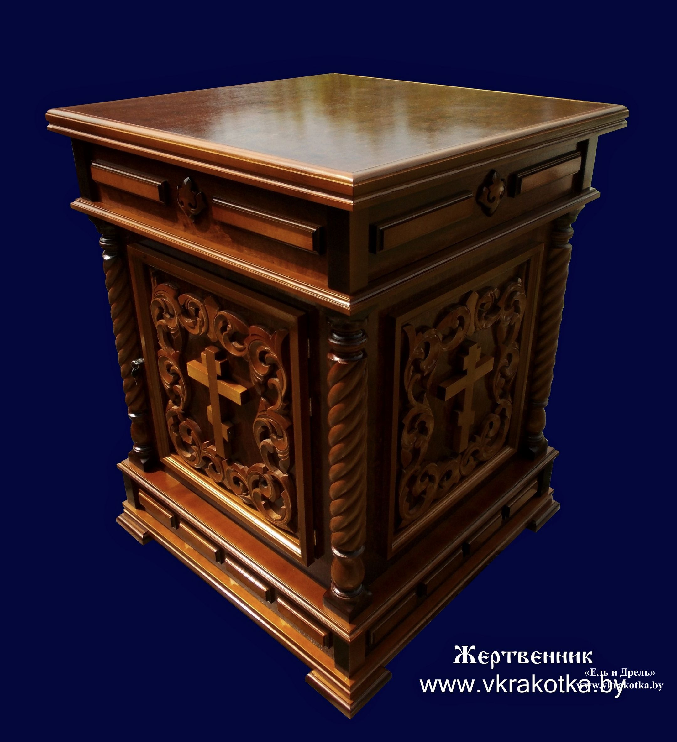 Купить резной жертвенник из дерева в Беларуси предлагаем в нашей мастерской "Ель и дрель"